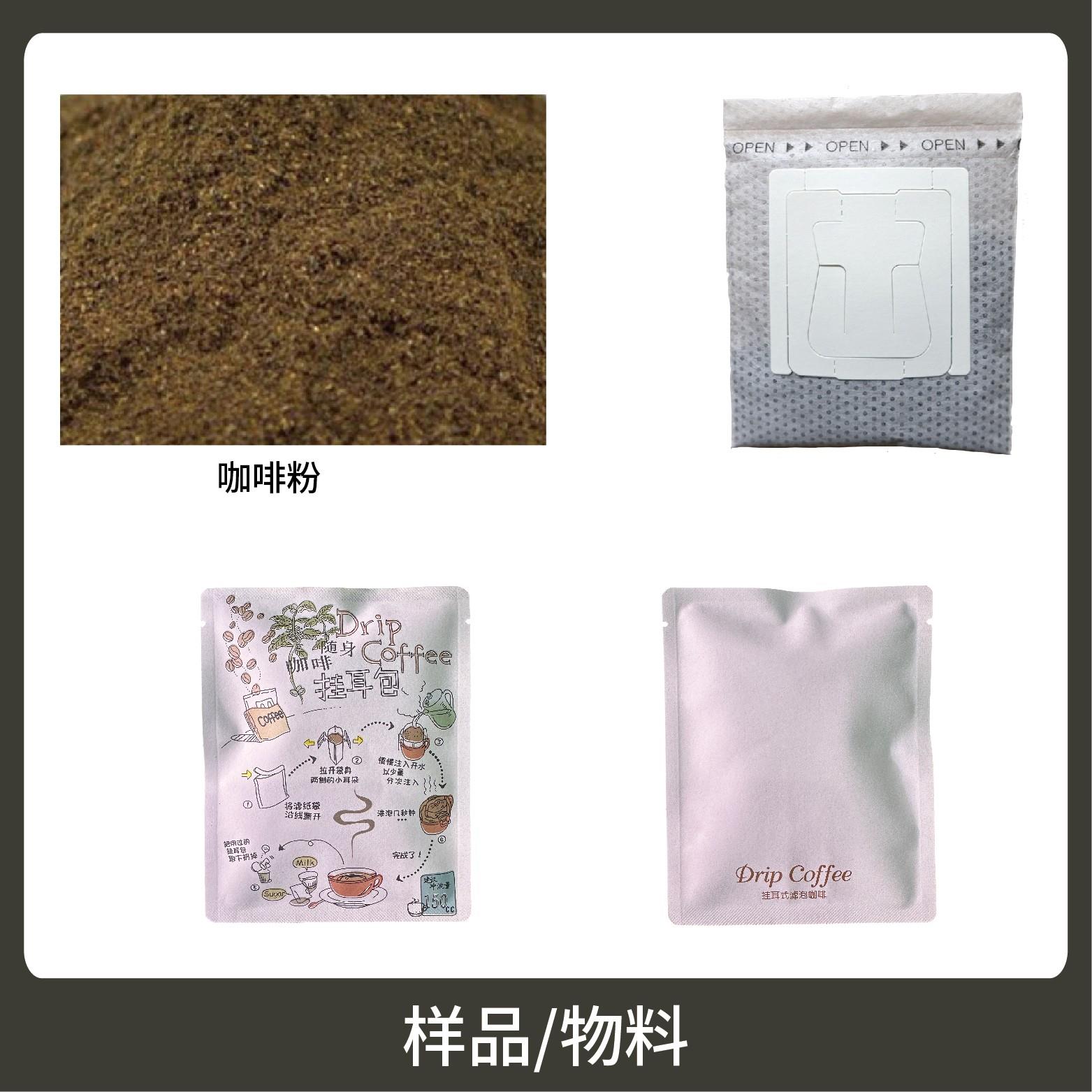5、包裝材料:內(nèi)袋(玉米纖維、掛耳咖啡膜);外袋復合膜,如:純鋁,鍍鋁等預制袋。